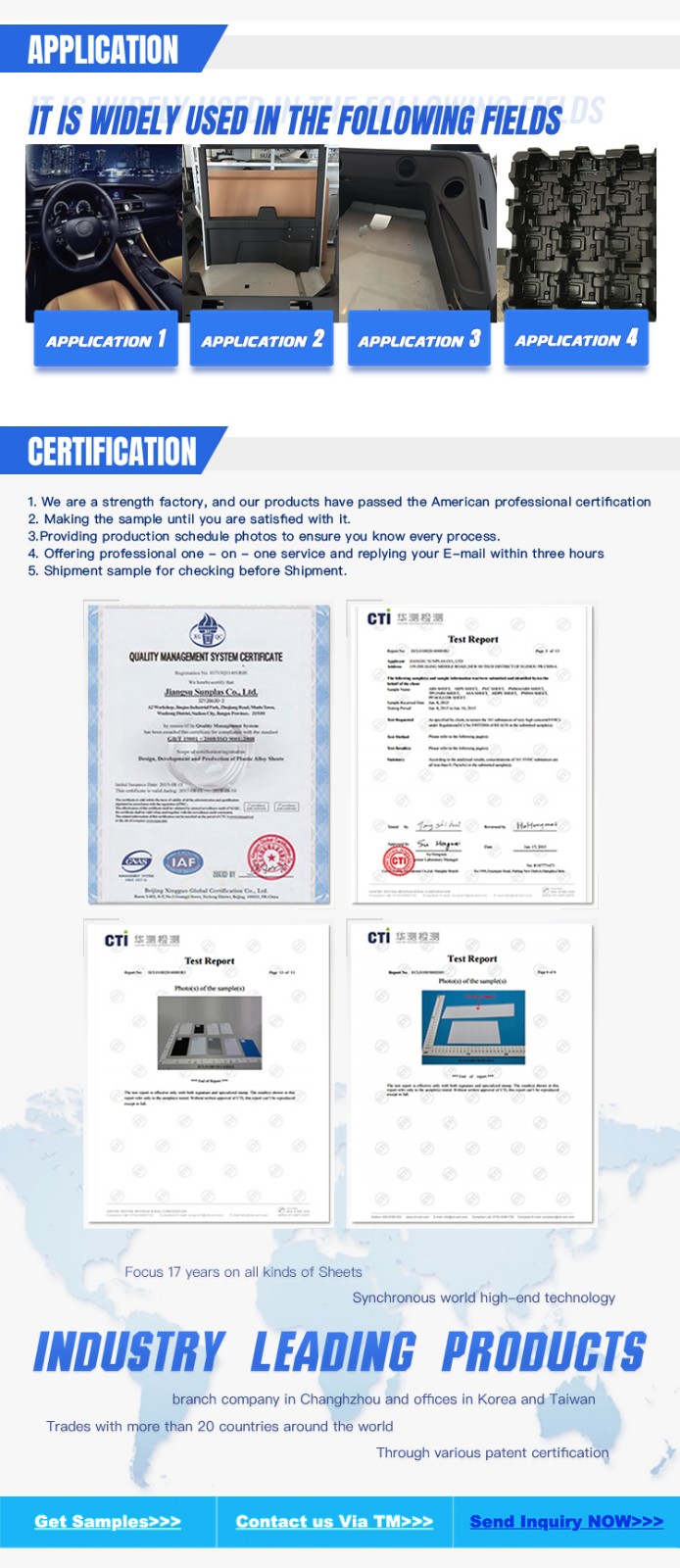 ABS板材在低溫下也表現(xiàn)出良好的抗沖擊性能。ABS具有良好的熱變形溫度和耐化學(xué)腐蝕性。它具有優(yōu)良的熱成型性能,可用于各種用途。