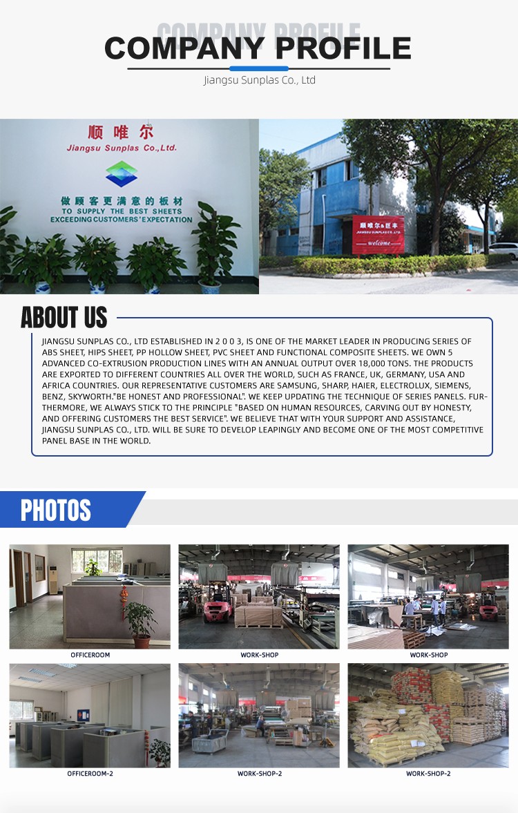 常州順唯爾材料科技有限公司成立于2003年,是生產(chǎn)ABS板材、HIPS板材、PP中空板材、PVC板材、功能復(fù)合板材等系列產(chǎn)品的市場leader之一。